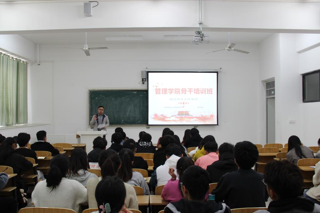 11月4日下午,管理学院于致知楼C103教室组织开展骨干培训之团务工作培训活动。本次培训由院分团委副书记李永鹏主讲,各班级团支委成员参加了此次活动。