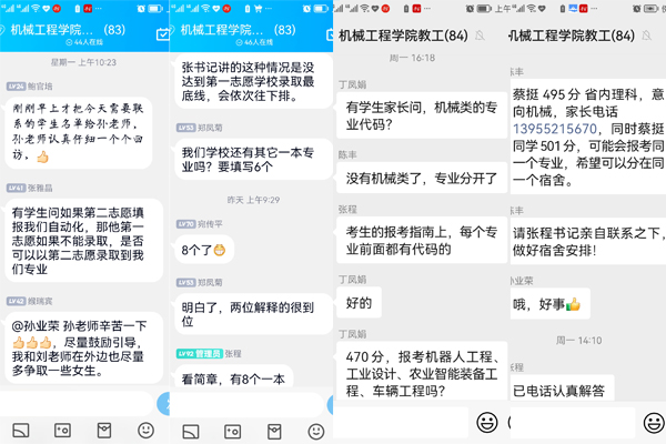 2022年招生宣传期间,机械工程学院还成立了由教学副院长和专业负责人组成的志愿填报咨询组,负责对接学校“2022招生线上辅导战队”,第一时间掌握大数据后台收集的相关考生信息,主动电话联系一本达线考生及其家长,解读招生政策、指导填报志愿;全体专业教师也踊跃参与今年的招生宣传,主动请缨联系考生和家长,广泛宣传学校和学院,鼓励考生报考WG官方网站。