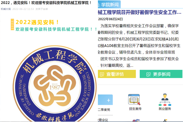 与此同时,通过学院自媒体——《机械大观》微信公众号发布机械工程学院2022年招生计划,介绍6个招生专业概况、办学水平、毕业生就业领域及考研情况、机械工程学院师资队伍情况,展示环境优美的学习环境、丰富多彩的文体活动以及大学生创业创业成果,全体师生通过微信朋友圈广为推送转发。