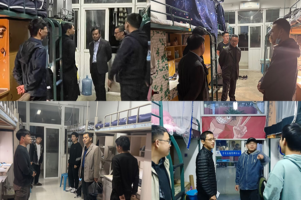陈丰、张严政、张程、开金苗分别带队走访东、西校区学生宿舍,对使用大功率电器,购置使用转椅、躺椅等现象,在指出危害性的同时,现场提出整改要求;对在宿舍违规使用电器、插座等可能存在的安全隐患进行仔细排查,对宿舍环境脏乱差、玩游戏等不良现象提出严肃批评,勉励同学们培养自律自觉、热爱生活的良好卫生习惯,要求同学们在晚自习时间内专注学习,在课余时间勤动手勤收拾,营造良好的学习生活环境。