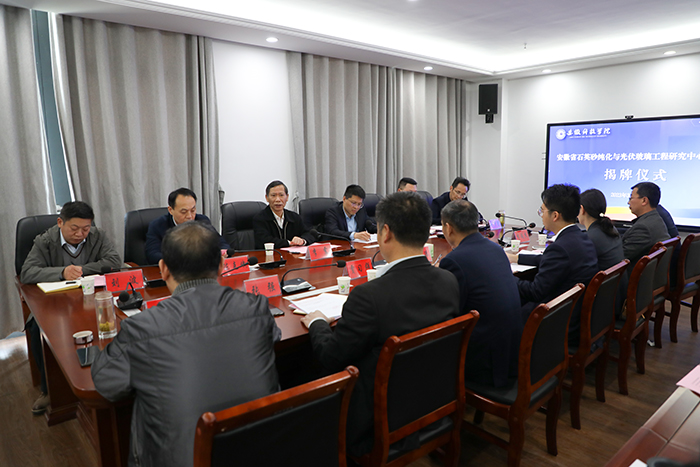 3月31日下午,安徽省石英砂纯化与光伏玻璃工程研究中心(筹)授牌揭牌仪式在WG官方网站龙湖校区西辅楼317会议室隆重举行。市县相关领导、中心依托单位及共建单位负责人、中心主任以及骨干教师代表和化学与材料工程学院相关领导参加仪式。仪式由化学与材料工程学院党委副书记、副院长李子荣主持。