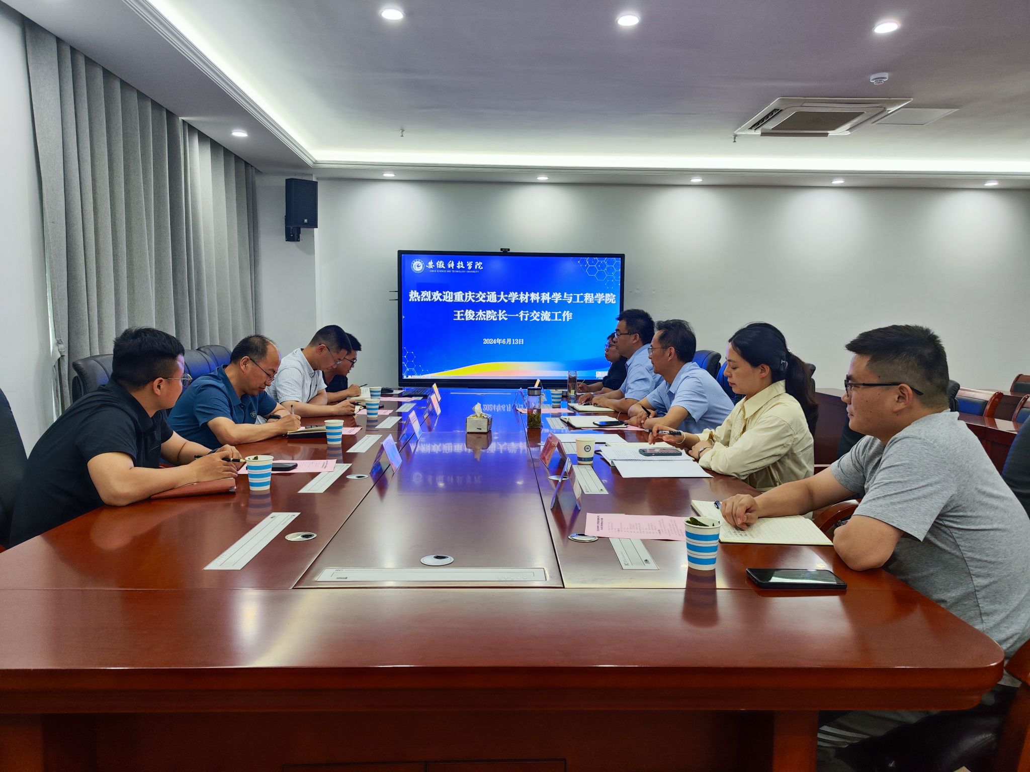 6月13日,重庆交通大学材料科学与工程学院院长王俊杰一行4人来我校化学与材料工程学院考察交流。学院院长李子荣、副院长惠贞贞及部分系主任参加交流。