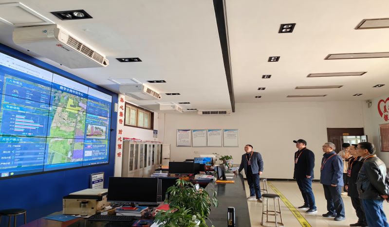 在小岗村党群服务中心,信息与网络工程学院院长余宏杰、机关党委组织员张敬强、图书馆副馆长王玉林,通过小岗村党委副书记严永兵的演示介绍,了解了小岗村数字中控中心日常运行维护情况