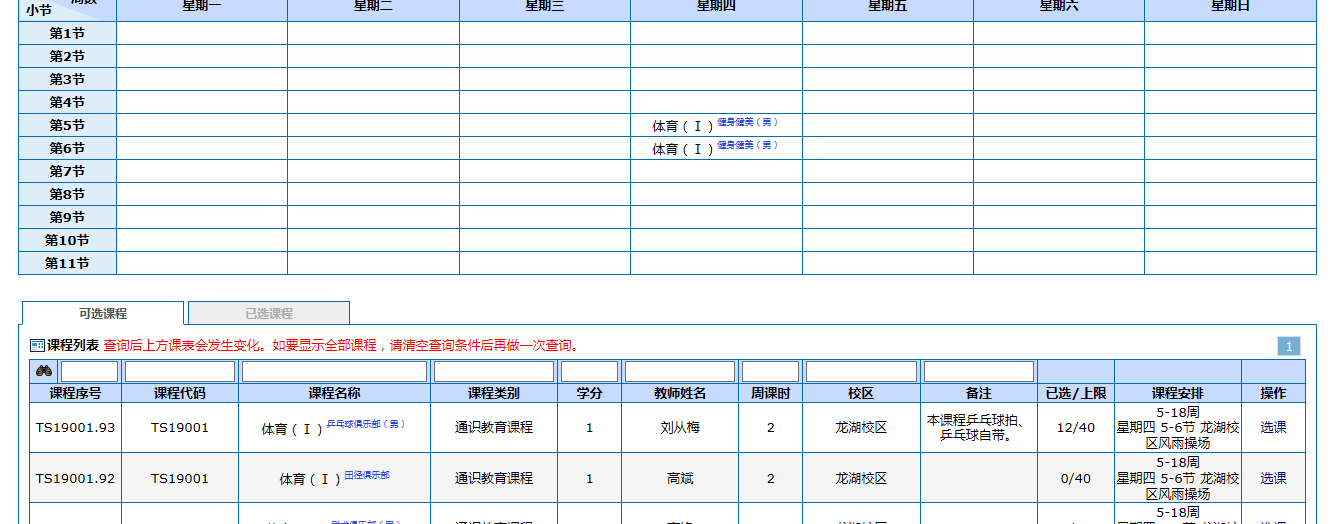 一、选课时间