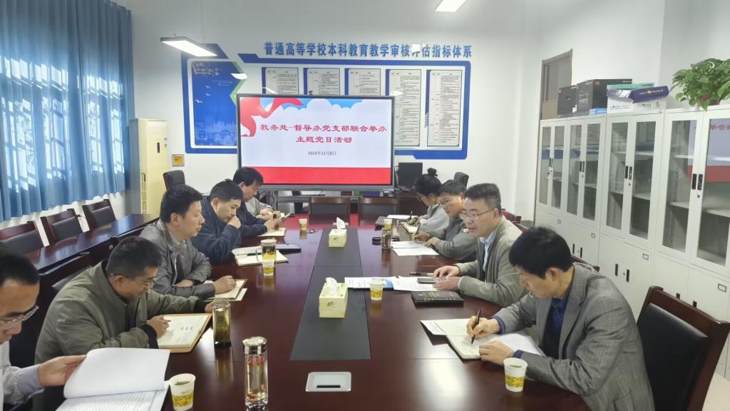 为充分发挥党员干部模范带头作用,为学校审核评估工作出实招,11月8日下午,教务处和督导办党支部联合开展“党建引领出实招,审核评估见实效”主题党日活动,党支部全体党员参加此次活动。活动由教务处党支部书记赵伟峰主持。