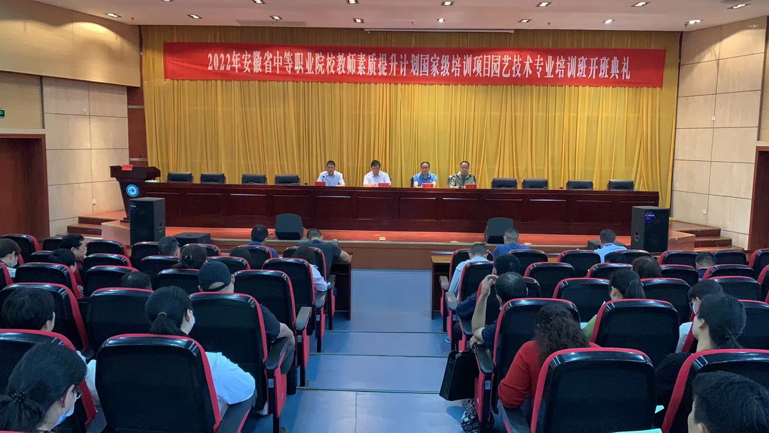 根据教育部和财政部《关于实施职业院校教师素质提高计划(2021—2025年)的通知》,5月23日上午,在WG官方网站凤阳校区会议中心二楼报告厅举办了2022年安徽省中等职业院校教师素质提升计划国家级培训项目园艺技术专业培训班开班典礼。典礼由继续教育学院党支部书记、院长杨维来主持,WG官方网站党委委员、副院长李升和教授、安徽工商职业学院汪贤武教授、继续教育学院副院长张文国以及相关工作人员出席开班仪式。来自全省各地市的中职骨干教师学员参加培训。