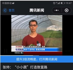 张帅,以现代知识型农民的模式,科学经营,规范管理,将知识和科学技术融入生产,2018年利用互联网+和电子商务再次对经营模式进行创新,启动了线上线下运营项目,项目借助于互联网平台和当前物流配送体系,实现线上销售,线下直配模式,从选种到种植、到采收、再到配送到家完全在可视可追溯下进行,还可以亲自参与其中。通过现场和网络多维度实现现代人们的消费需求。在经历2017大雪,2018大风、洪水、2019-2020疫情的多重困难下,带领合作社和种植户毅然坚持发展。带动发展情况得到各级政府和社会各界的认可,并多次官方报道推介。