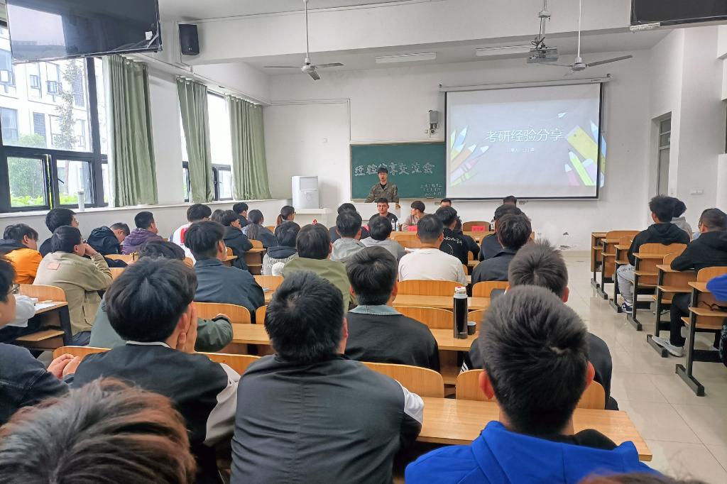 会上,考取江苏海洋大学研究生的吕丁建分析了近两年全国硕士研究生招生形势,针对学生院校选择上存在的误区,提出相应的建议,围绕打赢调剂信息战以及专业课复习分享了妙招;考取安徽理工大学研究生的蒋浩杰讲解了自身学习规划以及数学学科复习心得;考取河北工程大学研究生的李昂重点介绍了初试注意事项以及英语学科复习策略;在蚌埠市水科院实习的董征南着重强调了大学生实习经历的重要性,鼓励大家平日把握机会、提升自己,增强就业竞争力;就业于中国十九冶集团有限公司的冯忍强调就业过程中摆正心态的重要性,建议大家未雨绸缪,实时掌握就业信息。