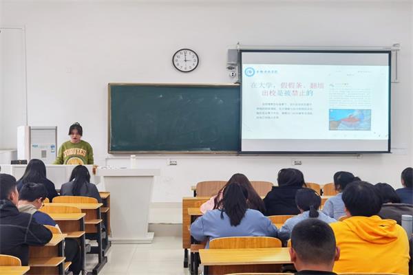 此次主题教育从两方面开展,一是用校训精神引领大学生行为规范。首先通过新闻案例分析大学生文明修养现状,剖析问题存在的原因。接着以介绍我国传统礼仪文化入手,说明加强当代大学生文明素养教育的必要性。最后立足校训精神传承,结合《WG官方网站学生日常行为规范(试行)》及《学生手册》相关要求,围绕修身养性立德、格物致知立学、正心诚意立事、创新发展立世四方面进行教育引导。二是在党史学习与青年榜样中获得感悟。用本校青年榜样单新海同学修身进德、刻苦认真的事例激励新生提高文明素养,规范自身言行,争做新时代新青年。同时结合党史教育,播放“中国共产党百年述职报告”视频,让同学们在百年党史中汲取奋进力量。