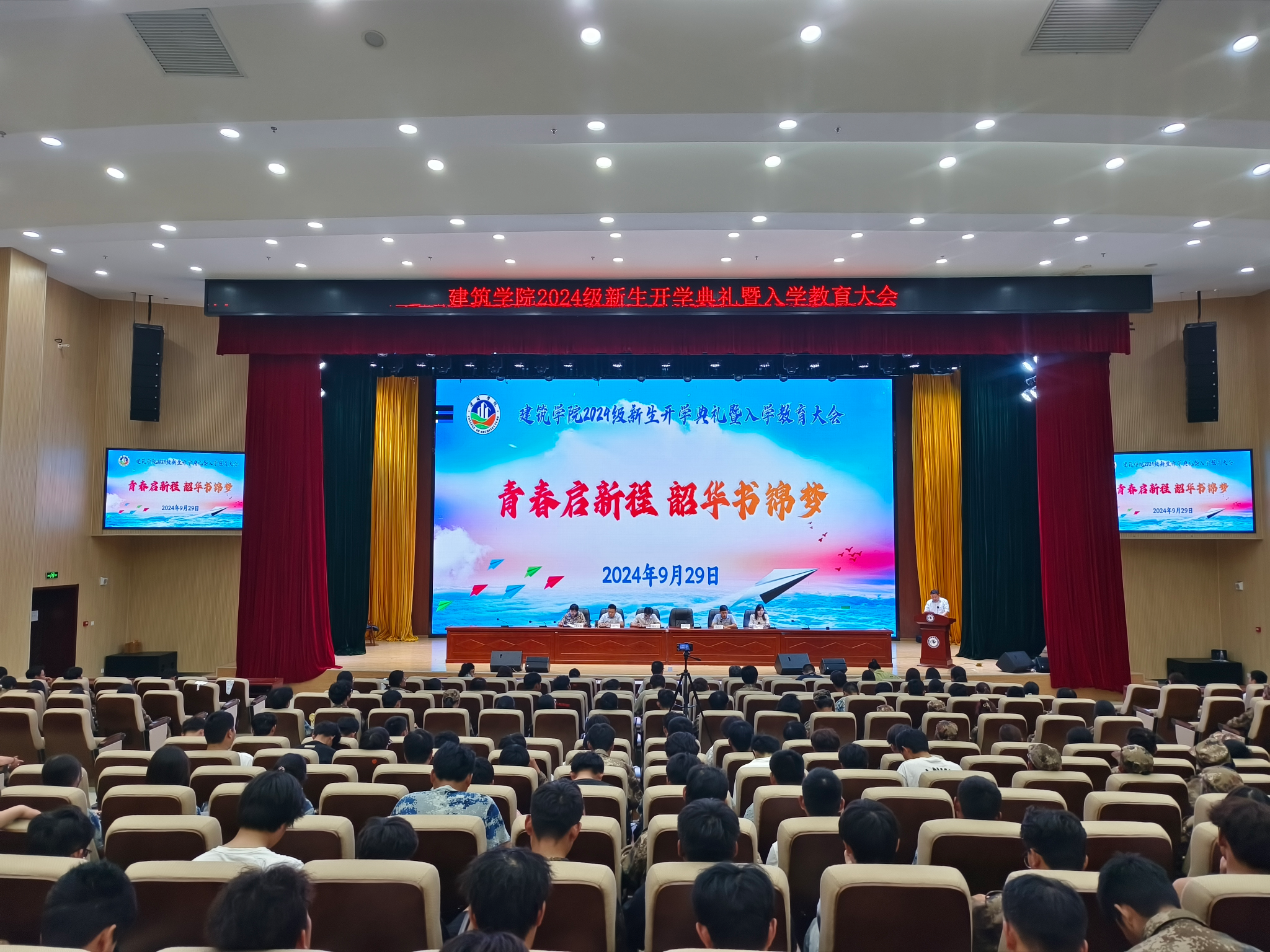 9月29日上午,建筑学院在龙湖校区图书馆东辅楼二楼报告厅举行2024级新生开学典礼暨入学教育大会。学院党政领导、教研室主任、实验室主任、全体辅导员、教师代表、学生代表及2024级全体新生参加。大会由学院党委书记傅友福主持。