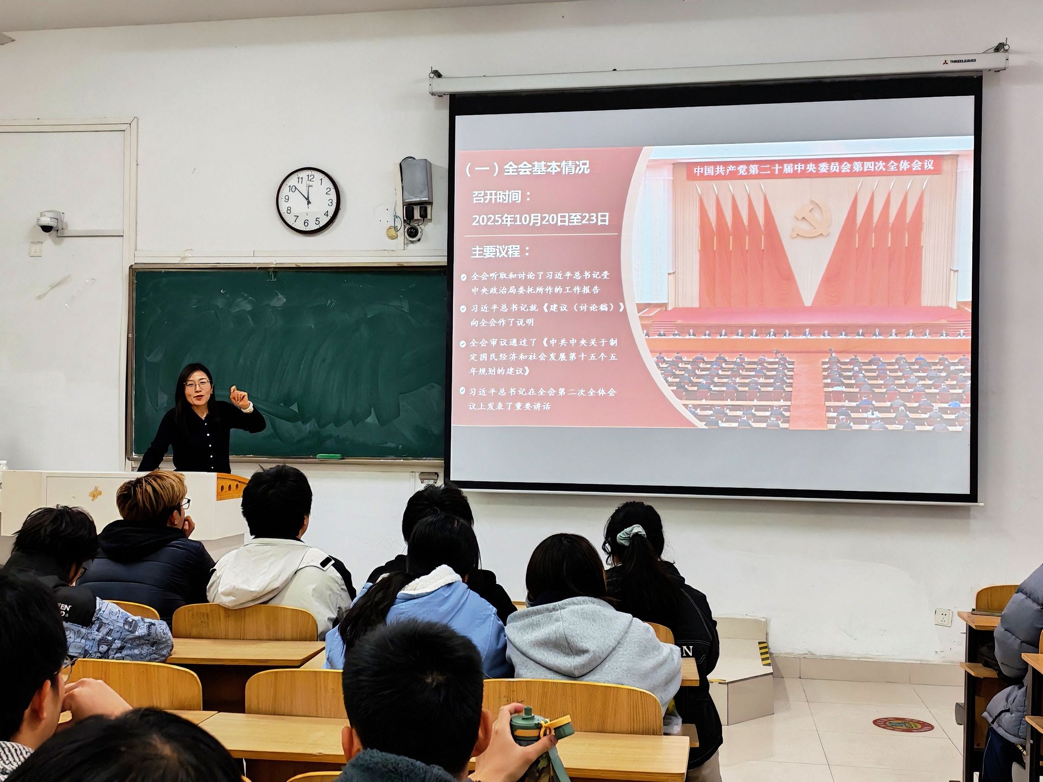 靳盼从“总体了解党的二十届四中全会的概况、深入领会党的二十届四中全会的重大意义、全面把握党的二十届四中全会的主要内容和挺膺担当新时代大学生的使命与责任”四个方面进行了深入阐释。她不仅系统梳理核心要点,更将宏观政策与青年成长紧密相连——把国家发展的“大方向”转化为青年奋斗的“小目标”,让理论不再是纸上文字,而是指引青春前行的“指南针”。她勉励各位入团积极分子和青马学员作为青年学子,要坚定理想信念、维护党中央权威。秉持新发展理念,主动聚焦“十五五”规划中关于建筑行业的建议,在专业学习中深耕细研,积极参与科创竞赛,发挥青年思维活跃的优势,为“中国制造”向“中国创造”转变注入青春动能。她强调学员们以更高的责任感和使命感将党的二十届四中全会精神融入日常学习和生活中,明确自身成长方向,切实做到学以增知、学以成才、学以立业、学以报国。要深刻理解习近平总书记对广大青年大学生的寄语,深刻认识自身肩负的历史使命和时代责任,将大会精神融入日常生活的每一个细节中,让党的二十届四中全会精神从“纸面上”走进“行动里”,做有理想、敢担当、能吃苦、肯奋斗的新时代好青年。(特约通讯员:武辉 摄影:范梦萍 陈步炜 审核:谢宜勤 傅友福)