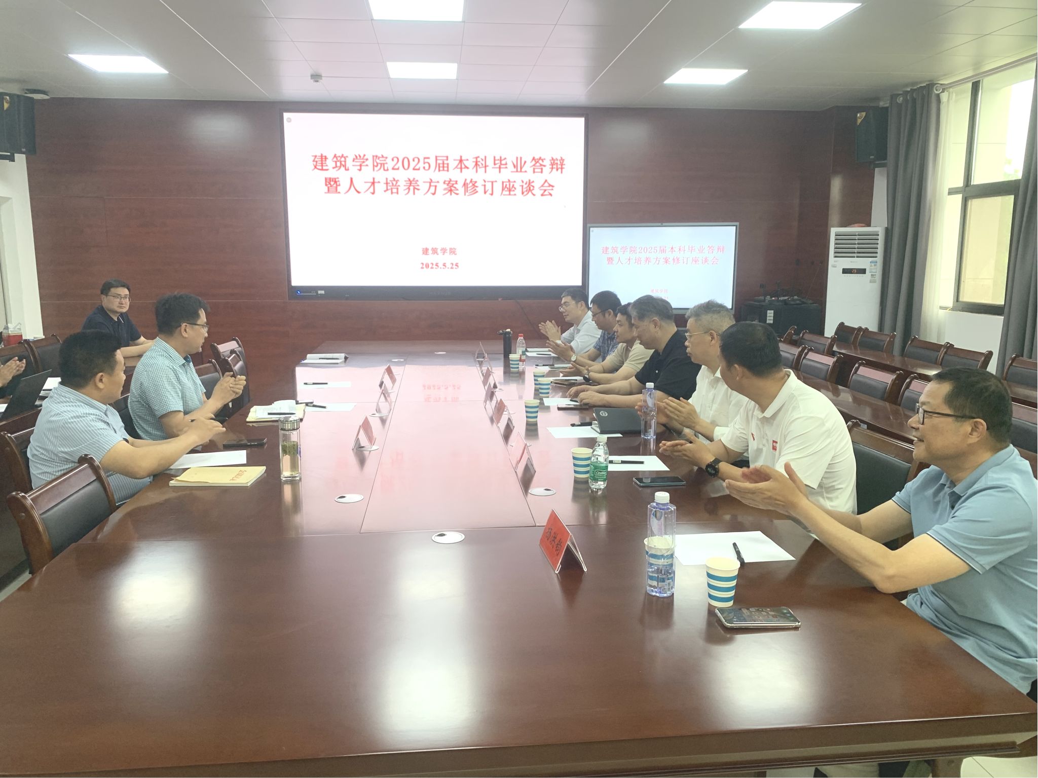 5月25日,建筑学院2025届本科生毕业论文(设计)答辩在龙湖校区致知楼B举行。来自蚌埠市自然资源和规划局、蚌埠市园林管理处、蚌埠市规划设计研究院、蚌埠市建筑设计研究院、安徽建工生态科技股份有限公司、国华工程科技有限公司、安徽元鼎建设工程有限责任公司等单位的7名行业企业专家,以及学院全体教工参加了此次答辩。
