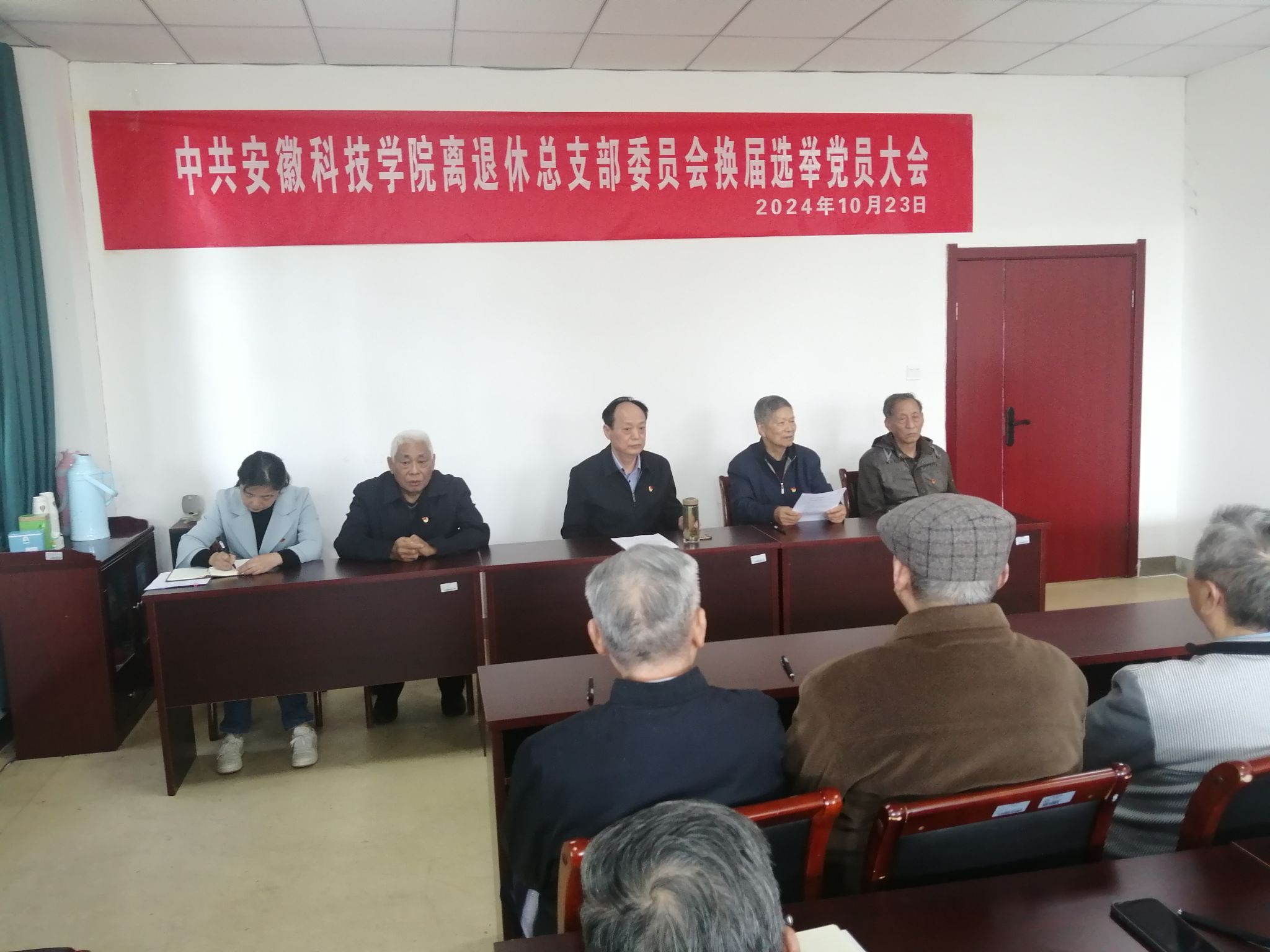 10月23日下午,离退休党总支在离退休会议室召开总支部委员会换届选举党员大会,离退休党总支上一届委员会委员在主席台就坐,会议由离退休党总支委员仲正林主持。