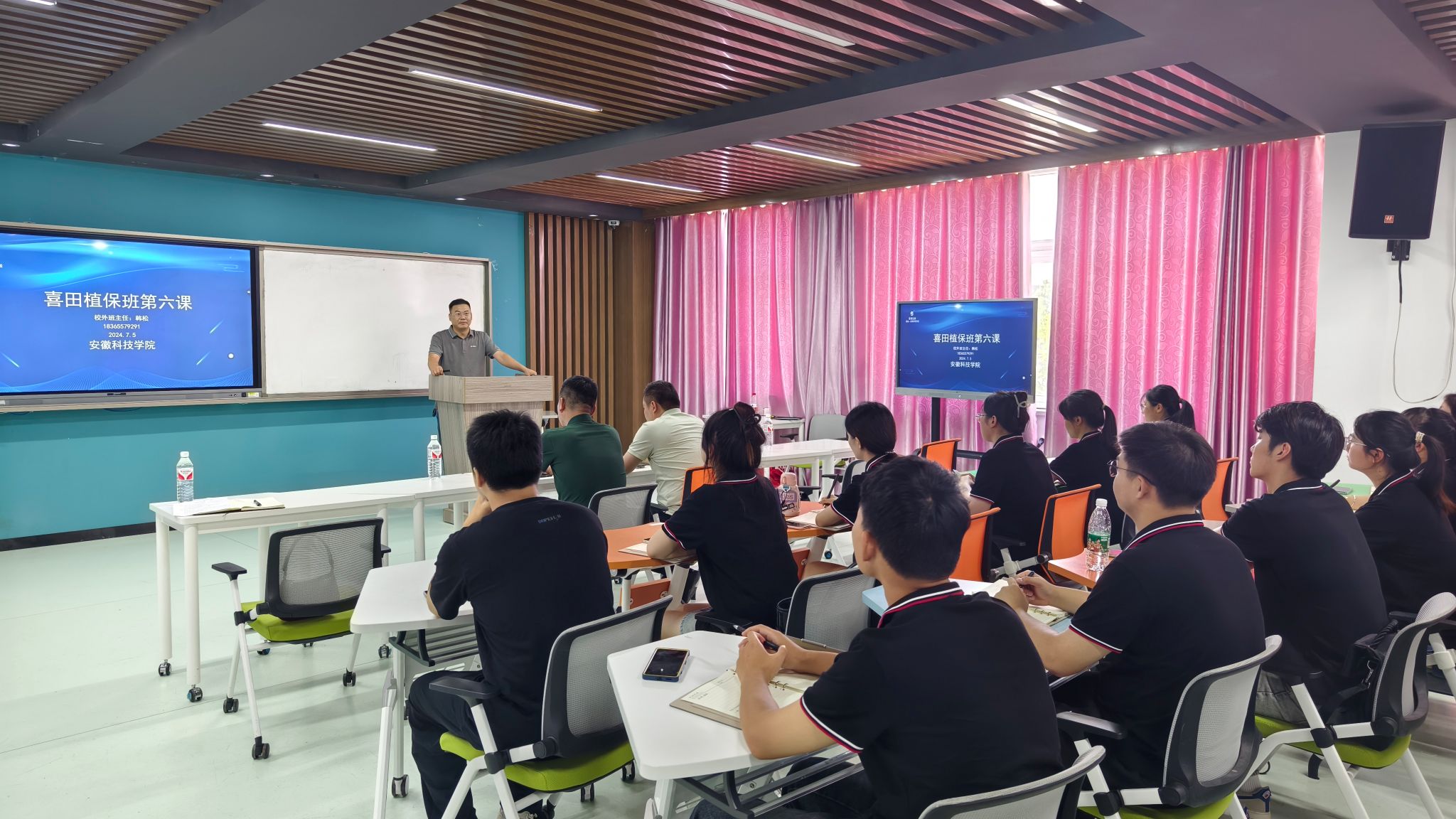 为进一步深化教学改革,推进校企协同育人,结合专业发展现状及专业课程开设情况,7月5日下午农学院邀请喜田生物科技有限公司销售总监韩松、江苏谱农丰生物科技有限公司董事长张必荣在求知楼B309为“喜田植保班”全体学生开展了一场精彩纷呈的讲座。讲座由农学院副科级辅导员李娜主持。