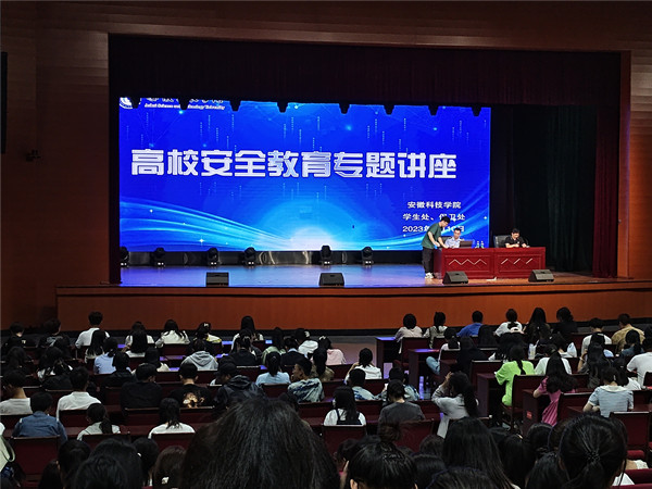 为进一步加强新生安全教育,引导广大新生提高安全防范意识,9月12日晚,农学院组织2023级全体本科生和全体研究生参加了新生安全教育专场报告会,凤阳县公安局洪武路派出所徐喆警官应邀讲授。报告会由农学院党委副书记张轶辉主持。