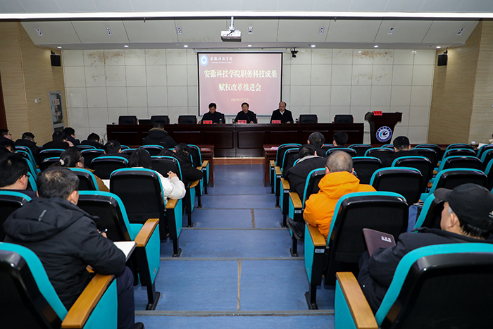 2月27日下午,学校召开职务科技成果赋权改革推进会。校党委书记时伟,党委委员、副院长王孝义出席会议,各二级学院院长、分管科研工作副院长、省级以上科研平台负责人、校级以上团队负责人、服务地方发展研究院院长、相关职能部门负责人及科研处全体人员参加会议。会议由王孝义主持。