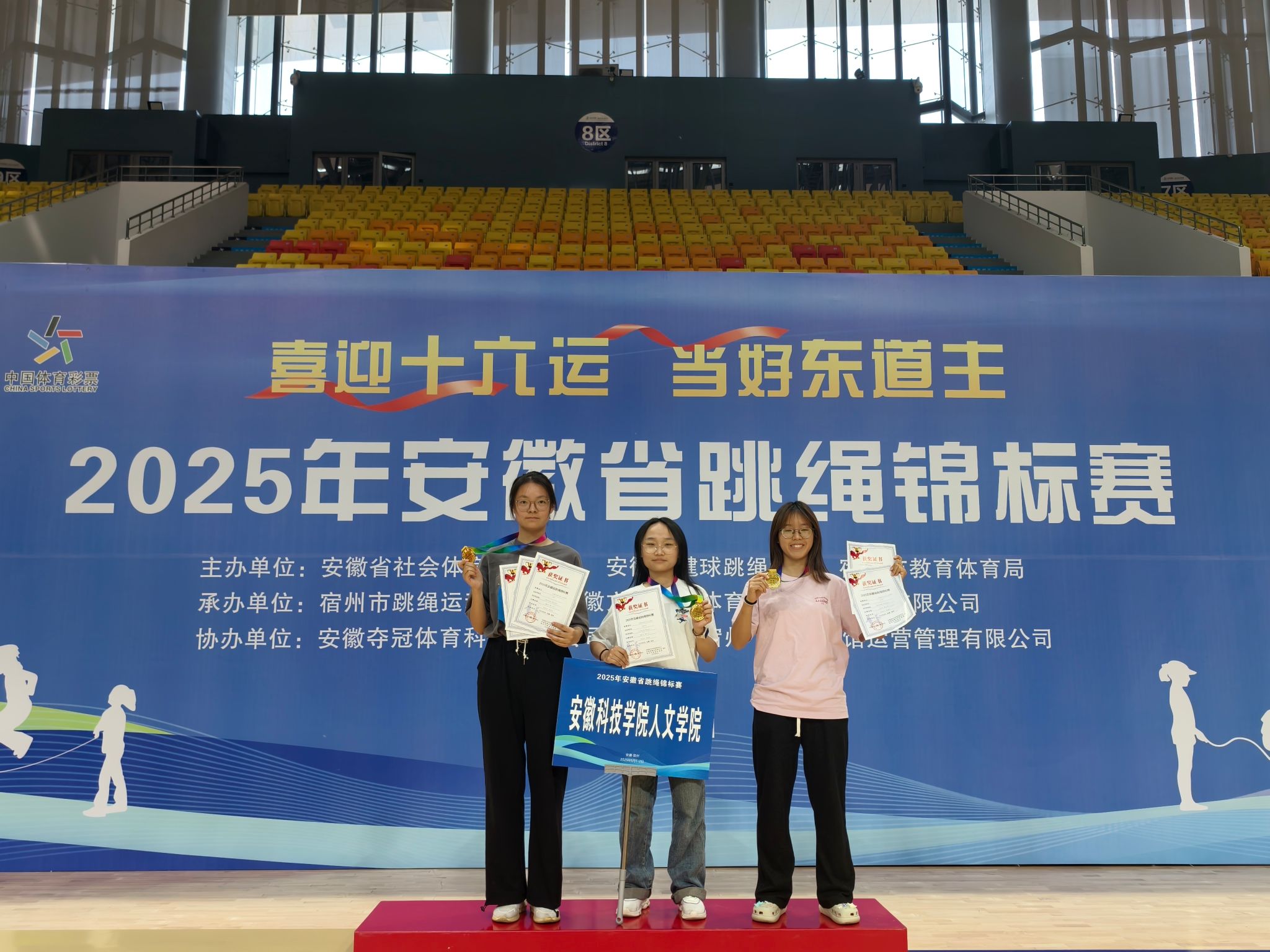 经过激烈角逐,由人文学院3名学生组成的WG官方网站代表队发挥出色、表现卓越,法学243班陈缘包揽青年女子组30秒单摇跳、3分钟单摇跳、30秒间隔交叉直摇跳3项冠军;汉语言文学232班李梦雨荣获30秒单摇跳第六名、3分钟单摇跳第五名;法学243班陈梦羽获得3分钟单摇跳第八名。