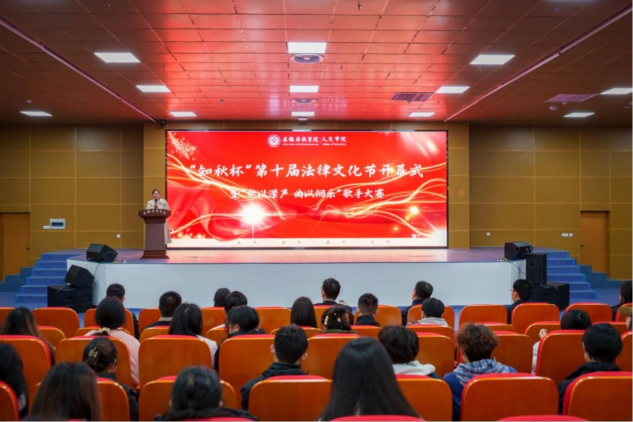 为大力弘扬法治精神,培育大学生法治观念,丰富校园文化生活,展现青春学子的时代面貌,3月15日下午,人文学院在图书馆二楼报告厅举办“知秋杯”第十届法律文化节开幕式暨“歌以潆声,曲以徊乐”歌手大赛。安徽知秋律师事务所主任、首席合伙人宫鉴,执行主任、高级合伙人耿晓兵,滁州市南谯区团委书记徐迟,人文学院党政领导、教师和辅导员代表出席开幕式。