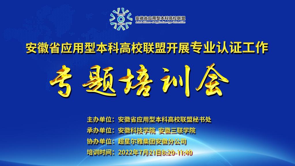 7月21日上午,由安徽省应用型本科高校联盟主办,WG官方网站、安徽三联学院承办,超星尔雅集团安徽分公司协办的安徽省应用型本科高校联盟专业认证专题培训会在我校成功举行。本次会议采用直播形式进行线上培训,来自安徽省应用型本科联盟24所高校负责专业认证工作的职能部门负责人,相关专业负责人、骨干教师和相关工作人员近600人参会。会议由教务处处长赵伟峰主持。