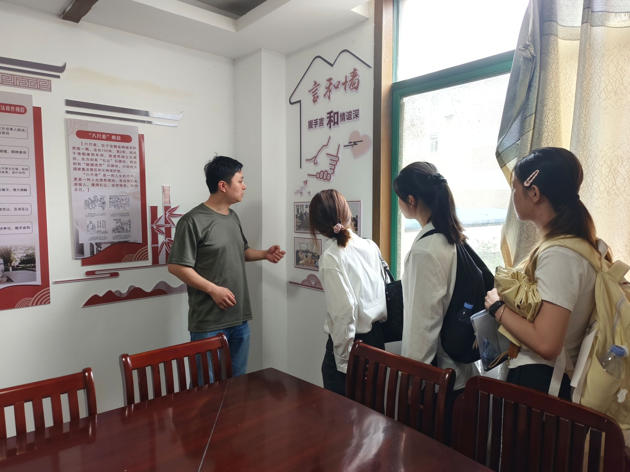 活动期间,实践团成员在社区工作人员引领下进一步学习了六尺巷经典典故,这一典故生动诠释了中华民族礼让包容的传统美德,成为桐城人民世代传承的精神财富。随后,实践团走进六尺巷文化长廊,长廊通过历史图景、文献资料等,系统呈现了六尺巷的历史渊源、文化价值及当代实践,完整阐释了六尺巷从邻里谦让行为升华为文化符号的发展脉络。在沉浸式的观学体验中,实践团成员深刻感受到和谐友善价值观跨越时空的强大生命力,以及这一文化符号在弘扬传统美德方面的独特魅力。在社区治理交流体验环节,文昌社区工作人员结合实际工作分享的基层调解实践案例,充分展现了六尺巷文化在社会治理中的大智慧。