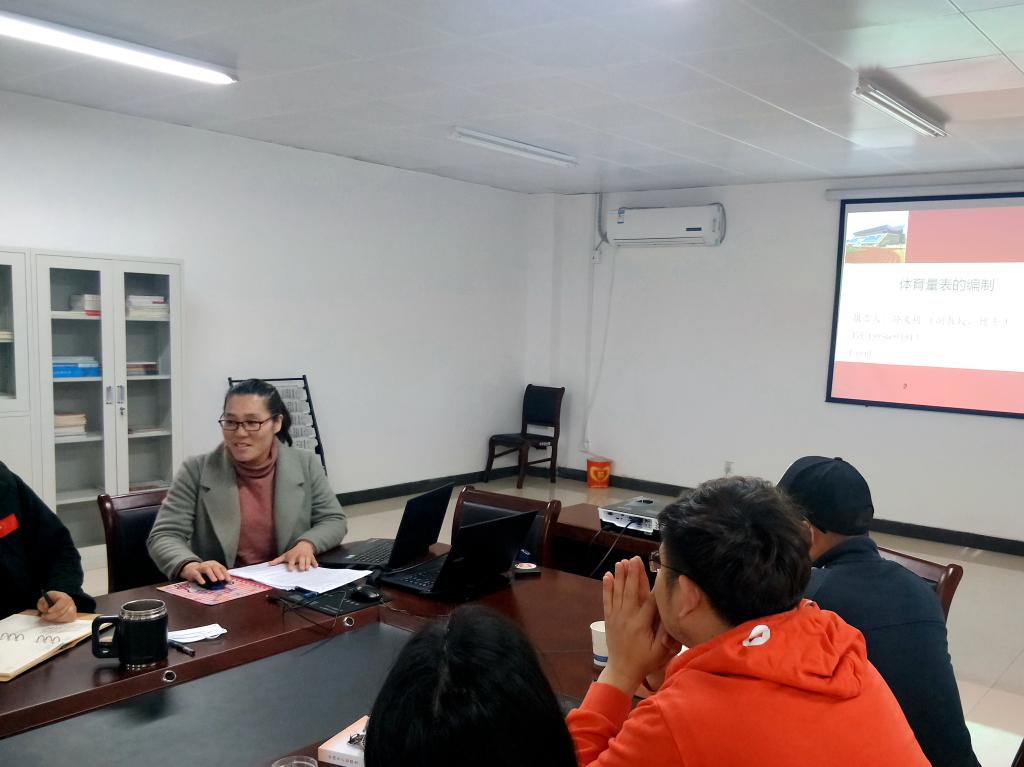 随后,体育教学部全体教师开展了教学研讨活动,体育教学部副教授孙文树博士作了题为《体育量表的编制》的学术讲座。