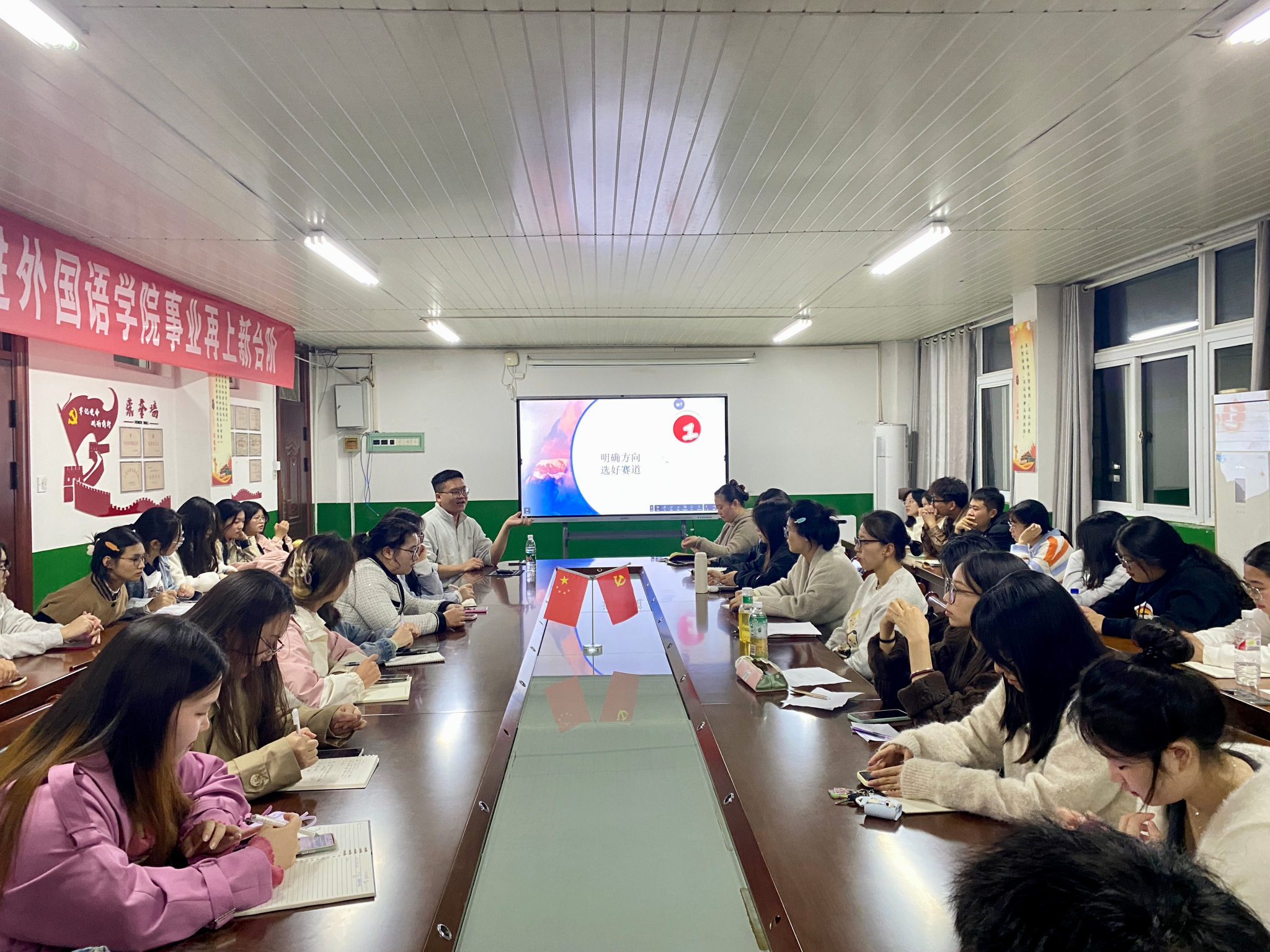 10月24日晚,外国语学院在学院会议室举行优秀校友就业创业报告会。报告会邀请了学院2019届翻译专业优秀校友欧阳林涛作为主讲嘉宾,学院第61期入党积极分子、2024年下半年党员发展对象以及学生主要干部参加报告会。报告会由学院党政办主任陈慧中主持。