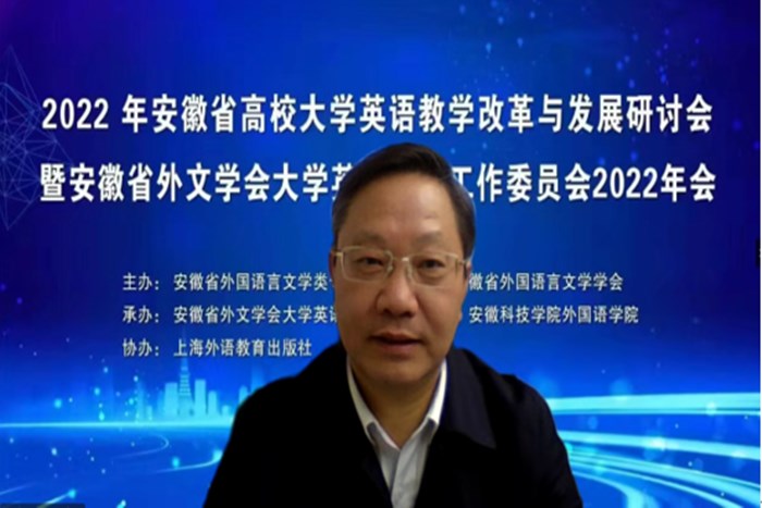 11月12日,安徽省大学英语教学改革与发展研讨会暨安徽省外文学会大学英语教学工作委员会2022年会如期在线上召开。会前,党委书记蒋德勤,党委副书记、院长李震高度重视研讨会承办工作,要求外国语学院精心组织确保高质量完成筹办任务,党委委员、副院长黄远友出席会议并致开幕辞。外国语学院院长刘萍主持开幕式和闭幕式。来自安徽省高校700余名专家学者汇聚云端,共同参加安徽省高校外语届一年一度的盛会。