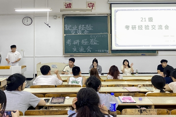 为助力外国语学院学生明确考研目标,掌握备考技巧,5月26日晚,外国语学院在求知楼A105教室举办考研经验交流会。交流会邀请了2024届成功考取研究生的曹孟、宋义娜、张怡婷、董书桓等四位毕业生分享考研经验。学院2021级全体学生参加交流会,会议由学院学生会学习发展部刘峰主持。