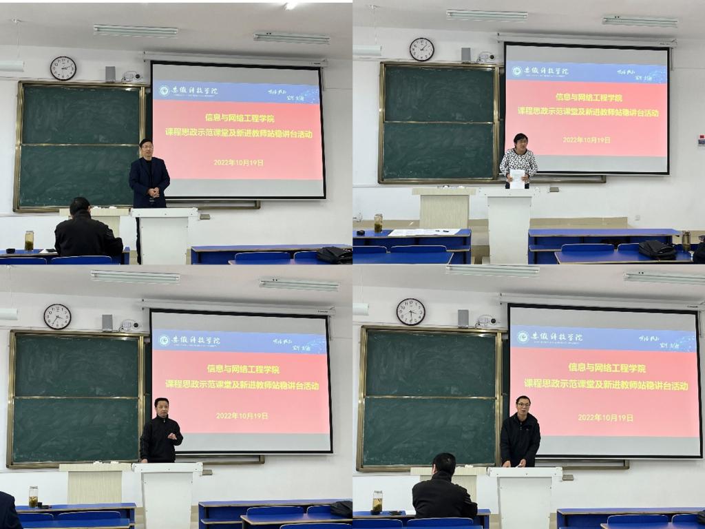 为充分发挥优秀教师的示范作用,切实提升新进教师的教学水平,继续强化青年教师的教学能力,10月19日下午,信息与网络工程学院在尚行楼C208教室开展课程思政示范课堂及新进教师站稳讲台活动。院长余宏杰、副院长曹浩、各系(部)主任、青年教师指导教师及导师组成员、课程思政相关课题负责人及课题组成员、近五年新进专任教师参加了活动,活动由曹浩主持。