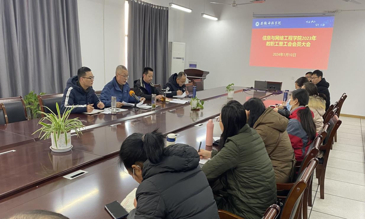 1月10日下午,信息与网络工程学院在尚行楼B418召开2023年教职工暨工会会员大会。学院党政领导以及全体教职工参加了会议,会议由院党委书记王振其主持。