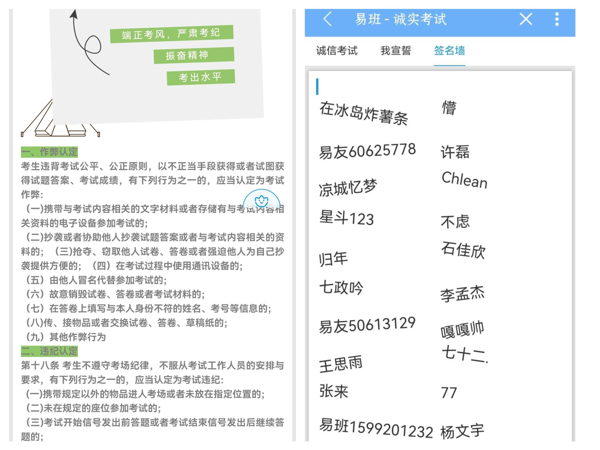 会上,各辅导员带领班级学生认真学习了《WG官方网站学生手册》中有关考风考纪的内容,对考试时应当遵守的注意事项及违纪行为的严重后果做了特别强调,向学生们传达了诚信考试的重要性和必要性,建议同学们对期末考试制定合理的复习计划,认真备考。各班辅导员还列举了校内外各种考试违纪行为被处分的真实案例,加强警示教育,要求同学们清晰认识到考试作弊的危害,希望他们严守考风考纪,认真备考,诚信考试,并组织班级同学签署诚信考试承诺书。