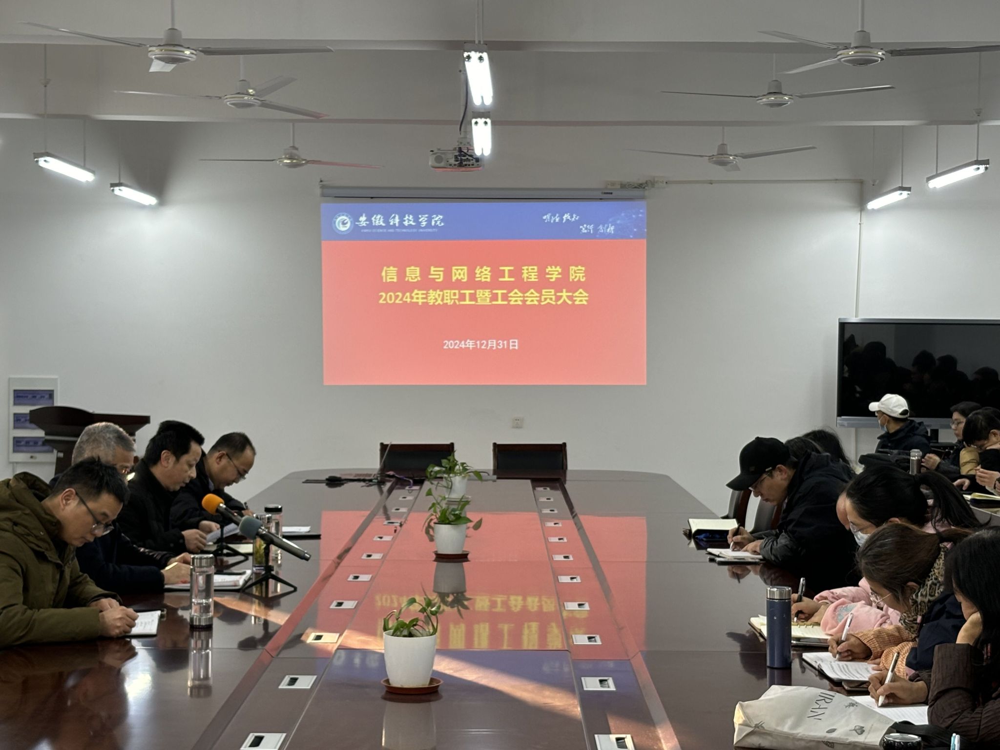 12月31日下午,信息与网络工程学院在尚行楼B418召开2024年教职工暨工会会员大会。学院党政领导以及全体教职工参加了会议,会议由院党委书记王振其主持。