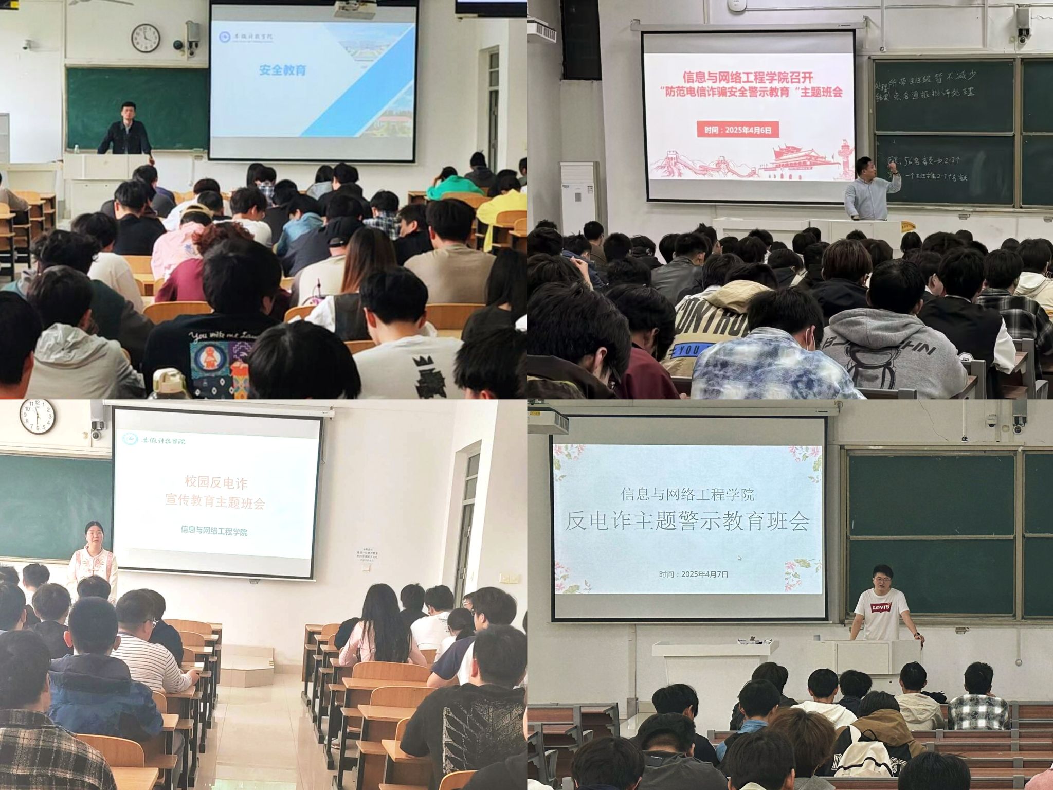 为增强学生防范电信网络诈骗意识,提升自我保护能力,4月1日至8日,信息与网络工程学院各班级陆续召开“反电诈安全教育”主题班会,会议由各班辅导员组织。
