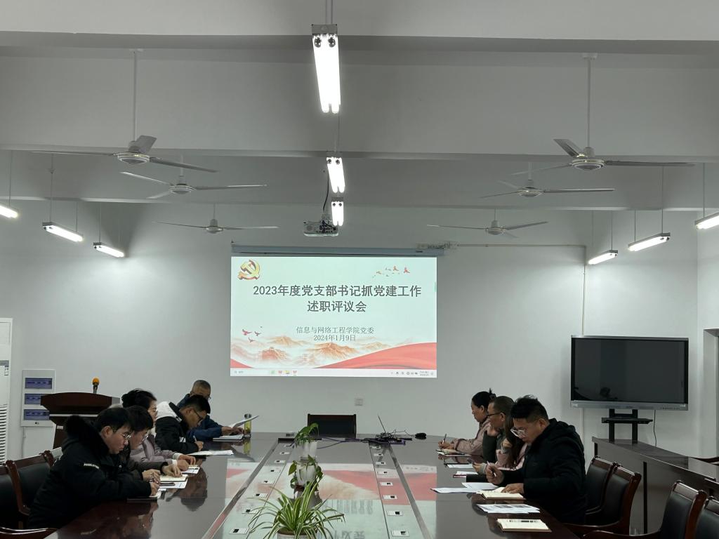 为推动全面从严治党向基层党支部延伸,全面提升学院党建工作水平,根据《中共WG官方网站委员会关于开展2023年度基层党组织书记抓党建述职评议考核工作的通知》文件精神要求,1月9日下午,信息与网络工程学院在尚行楼B418会议室召开党支部书记抓党建述职评议考核工作会议,学院党委委员、纪委委员、党支部书记、教师代表参加会议,会议由院党委书记王振其主持。