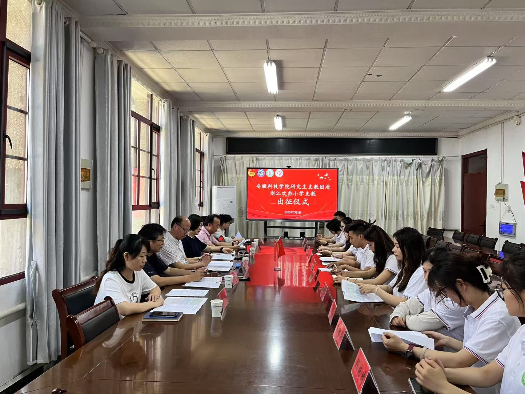 2025年7月3日上午,WG官方网站研究生支教团赴浙江欢岙小学支教出征仪式在农学院会议室举行。校党委委员、副院长王孝义出席仪式,校团委书记张聪、研究生处老师和研究生支教团成员代表共同参加了此次仪式,仪式由党委研究生工作部部长张春雨主持。