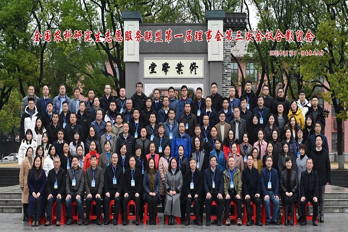 2月12日,由中国学位与研究生教育学会农林学科工作委员会主办,湖南农业大学、WG官方网站和吉首大学联合承办的全国农科研究生志愿服务联盟(以下简称“联盟”)第一届理事会第三次会议在湖南农业大学修业讲堂隆重召开。全国农业专业学位研究生教育指导委员会秘书长、中国学位与研究生教育学会农林学科工作委员会主任、中国农业大学研究生院常务副院长郭鑫,联盟理事长、WG官方网站党委书记蒋德勤出席会议;联盟第一届理事会成员及成员单位代表共150余人参加会议。