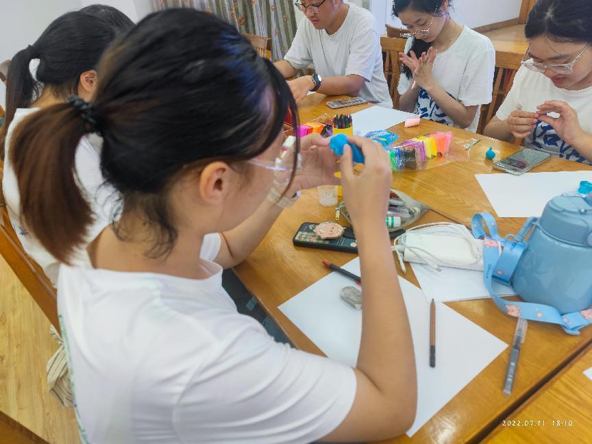 老手艺迎接新机遇,非遗融合江豚谱新篇。为推动非遗重新焕发魅力,助力当代青年增强文化自信,开拓江豚保护新思路,扩大江豚宣传的影响力。2022年7月11日,扬州大学生物科学与技术学院佑见江豚生态保护团队开展“学习烙画非遗,展示江豚之美”活动。团队中研究生与本科生成员积极组织活动过程,邀请到扬州市烙画非遗传承人阙真金、谢志安进行现场教学。结缘烙画四十余年的非遗传承人阙真金手把手地教导学生,引导学生学习非遗技艺,体验烙画之趣。