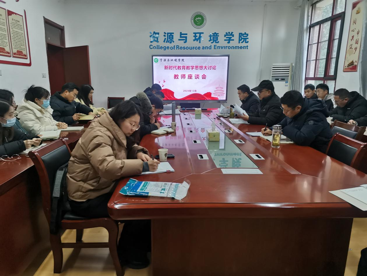 为深入贯彻落实教育部关于深化教育教学改革的精神,促进教学理念的更新与发展,根据2024年学校本科教育教学工作会议要求,12月20日上午,资源与环境学院召开了教育教学思想观念大讨论座谈会。学院党政领导、系主任、实验室主任,近三年新进教师共计20余人参加。副院长邹海明主持座谈会。此次座谈会旨在集思广益,汇聚智慧,共同探讨新时代背景下的教育教学新思路。
