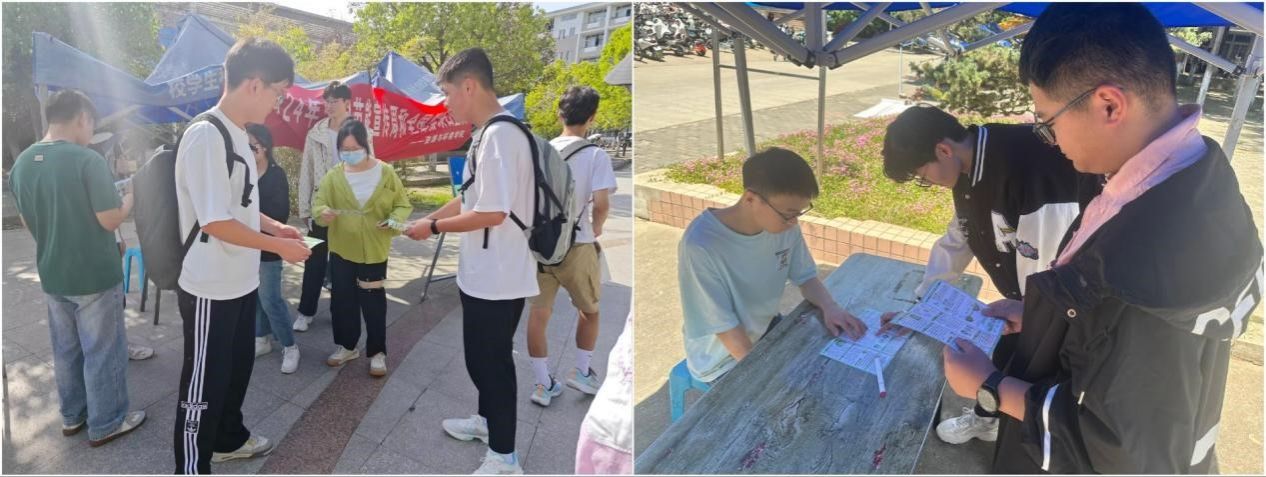 资源与环境学院志愿者服务中心于5月13日在西区天桥下小广场举办了全国节能宣传节周志愿服务宣传活动。通过向同学们分发、讲解环保宣传册来增强同学们的环保意识,同时也为校园环境美化贡献力量。