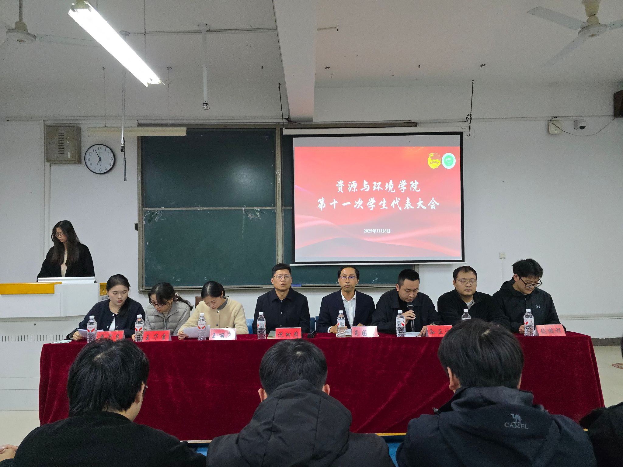 为凝聚学生力量、规范学生组织建设。11月6日晚,资源与环境学院第十一次学生代表大会在新知楼A110教室顺利召开。学院党委书记沈树周、党政办主任吴国良、学生会指导老师孙正浩及学院有关教师应邀出席,学院学生会代表参加此次会议,会议由孙正浩主持。