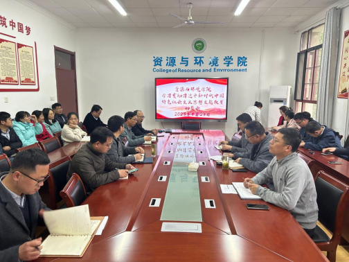 4月23日下午,资源与环境学院在学院会议室召开学习贯彻习近平新时代中国特色社会主义思想主题教育动员会。学院党政领导和全体教职工参加会议,会议由学院党委书记、院长李孝良主持。
